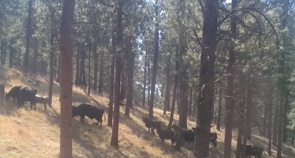 Photo: cattle browsing through a well-managed forest in Eastern Oregon.