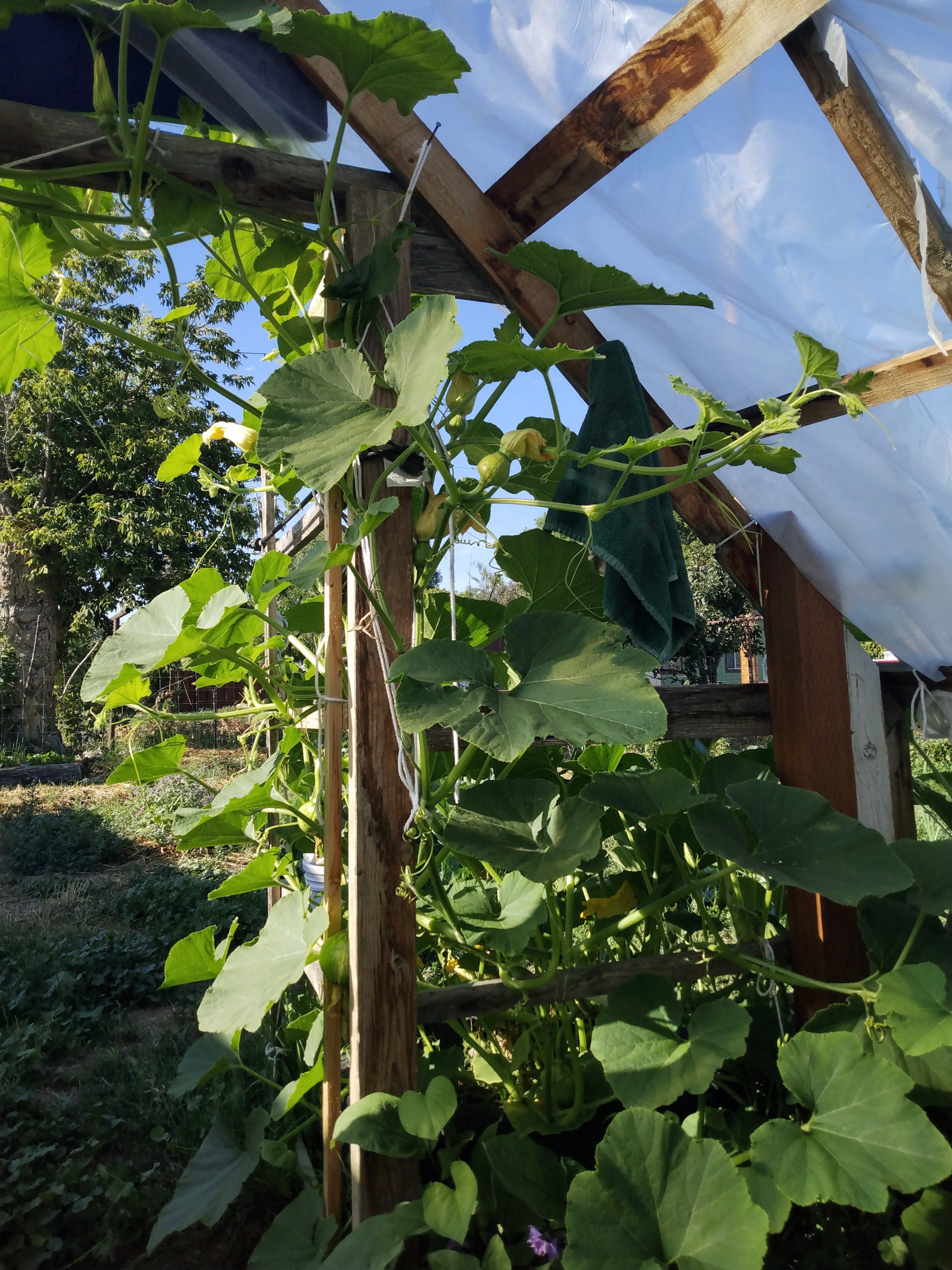 Photo: Squash vine growing in urban teaching garden.
